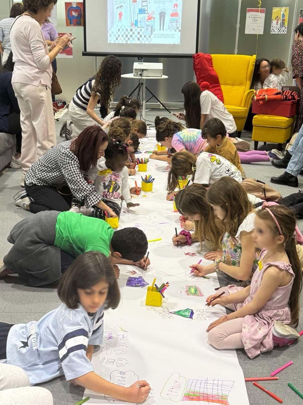 A particularly moving moment was the solidarity initiative that took place during the book presentation. Participants’ drawings and messages were placed on blankets—donated by the Creative Europe Desk Cyprus. These blankets, along with a copy of the book, were delivered to the children of Kofinou Reception and Accommodation.